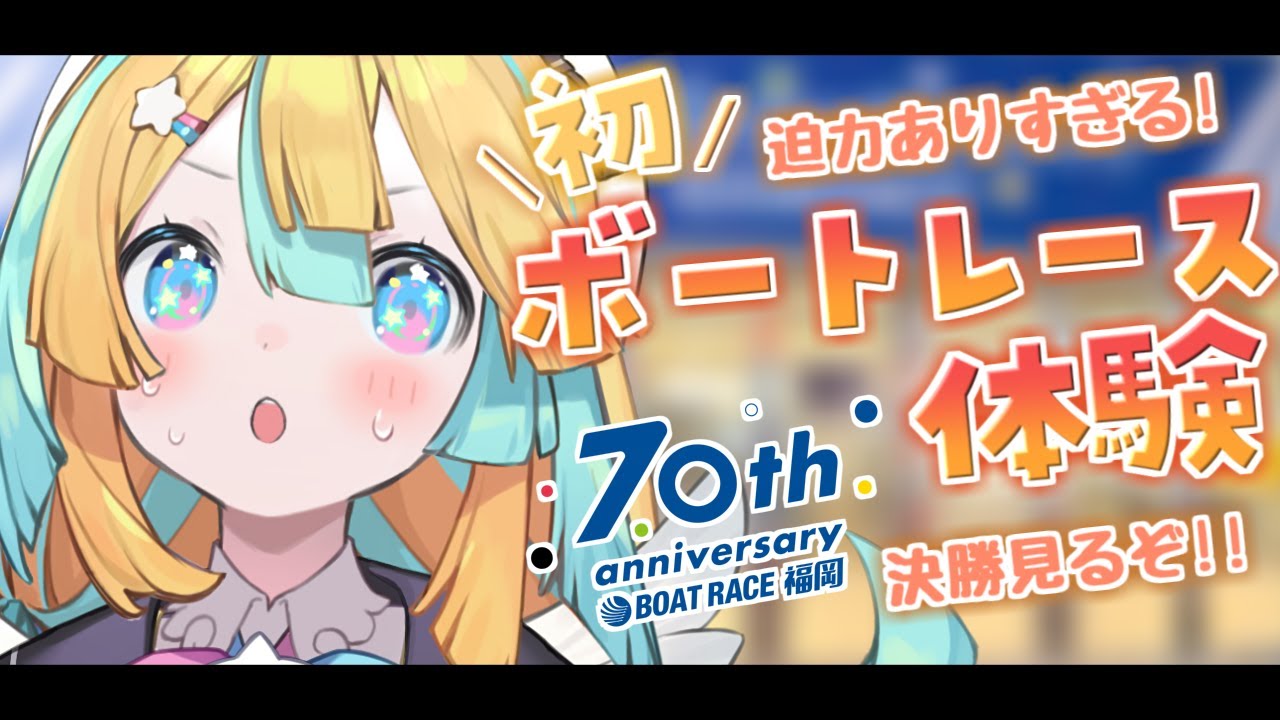 Vttuber「天川はの」が、天神からボートレース福岡までのスポットや、70周年の場内外の様子を紹介!